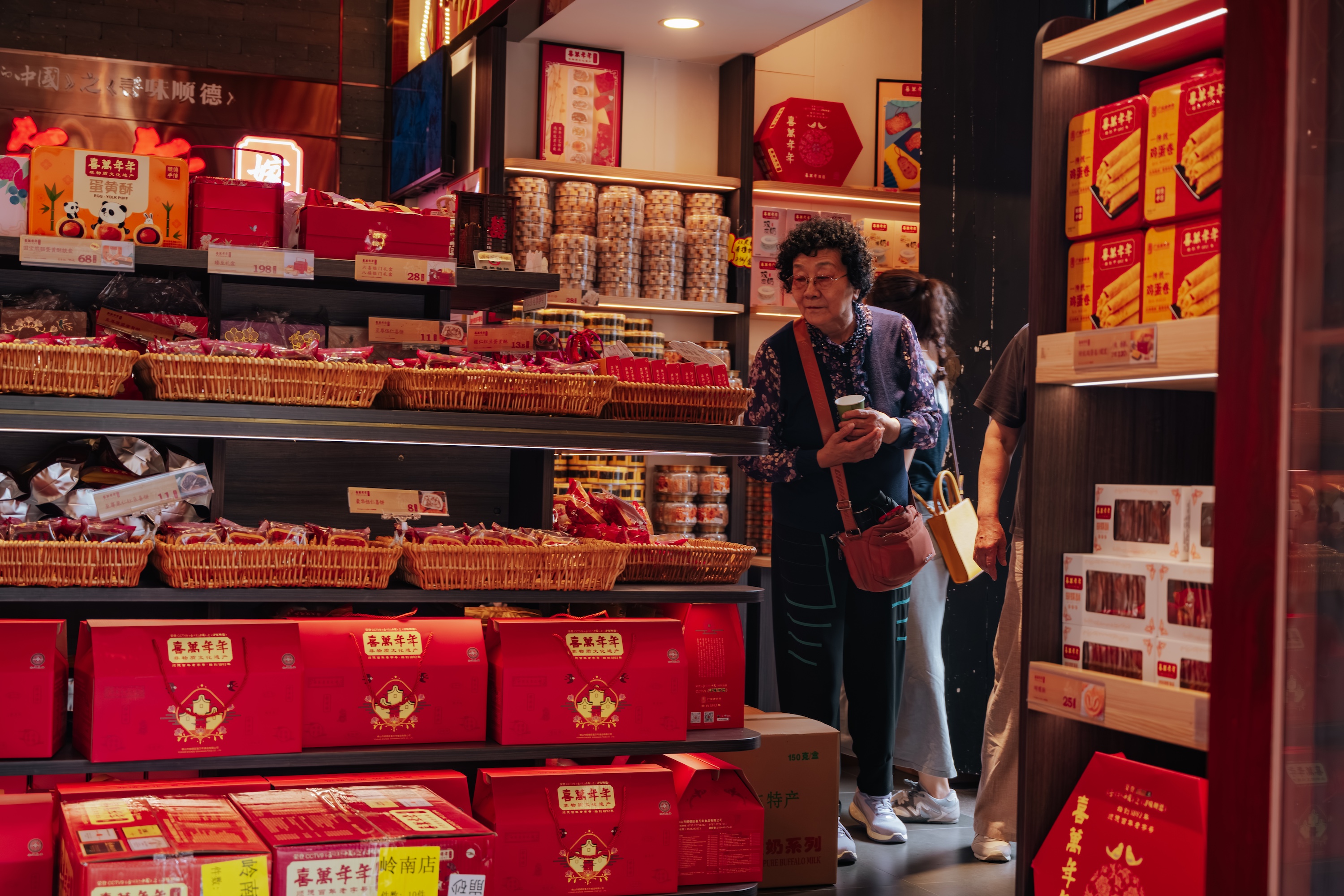 游客在佛山市南风古灶景区的文创店铺购物。邱活摄
