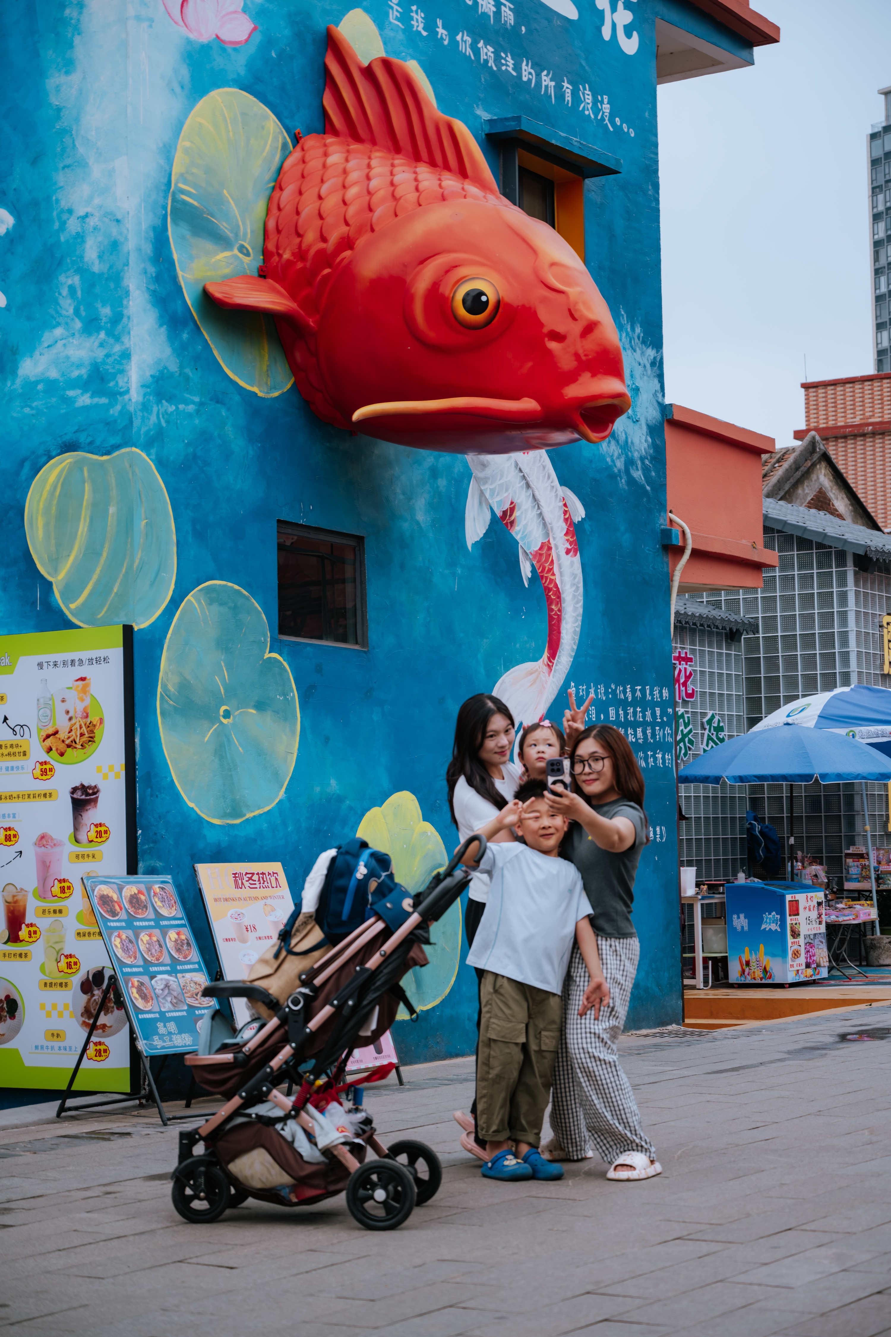 “苏村坐落在西江之畔的荷城街道,村民世代以打渔为生,单一的农业生产模式使苏村面临发展瓶颈,我们意识到,只有农文旅融合发展才能让苏村重新焕发生机。”苏村锦鲤文化街区负责人介绍。近年来,苏村打造全国首条锦鲤文化街区。在这里,游客不仅能观赏世界上最大鱼尾龙造型花岗岩雕塑、锦鲤池等特色景观,还能在汇聚本土风味的“明小店”,将农特广货带回家。