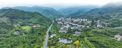 浙江杭州市余杭区径山镇乡村,青山绿水与村庄农房相映成趣。 |