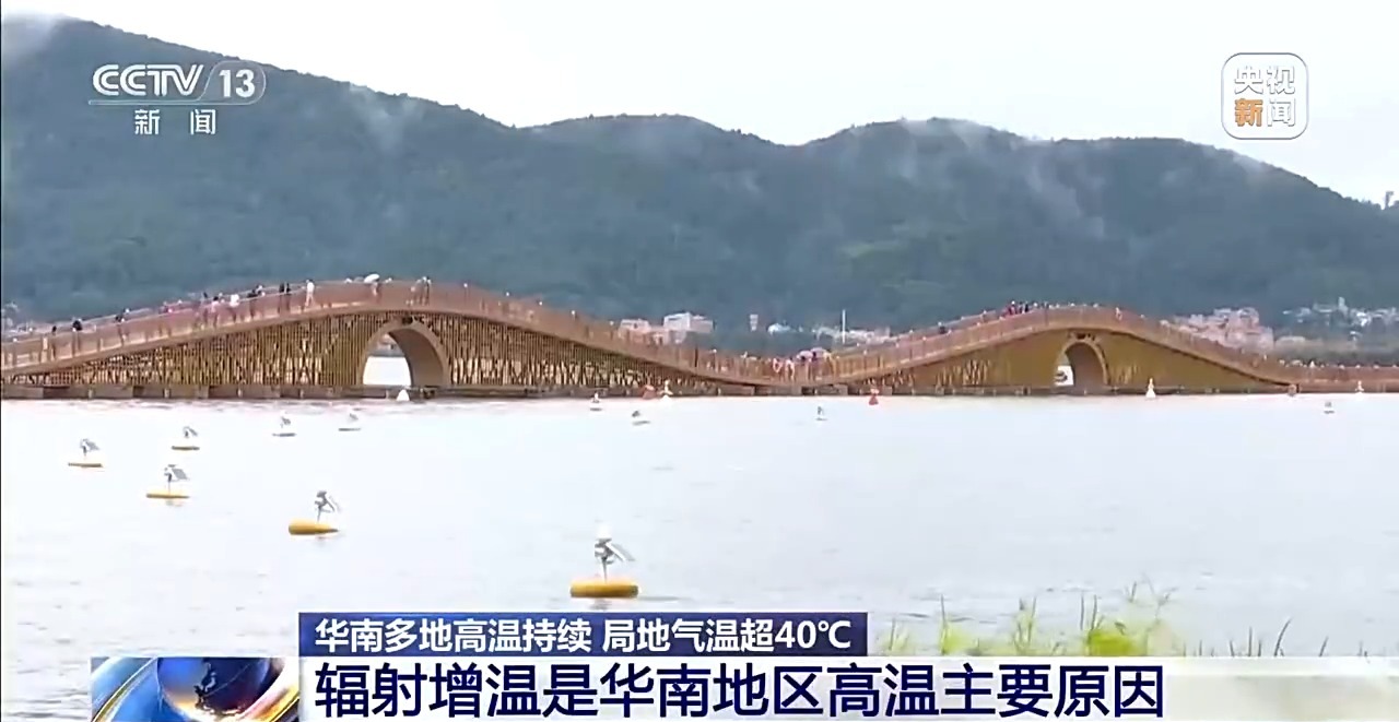 中央气象台首席预报员 周宁芳:目前整个西太平洋副热带高压,控制了南海的大部地区,华南地区处在这个副热带高压的控制下,所以说由于下沉的气流造成华南地区整个出现一个晴好的天气,辐射增温是华南持续高温天气的主要原因。