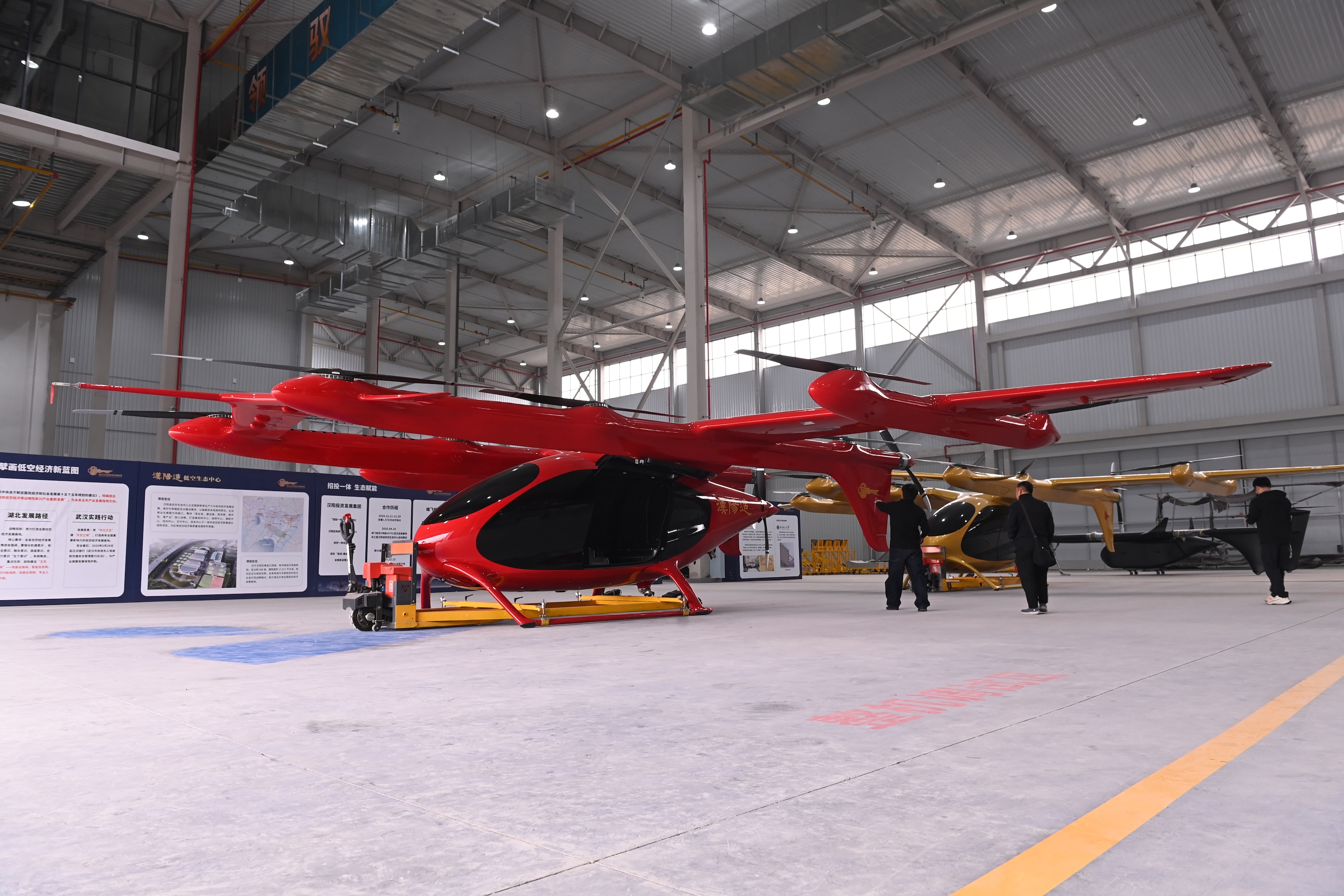 在武汉市汉阳区汉阳造低空生态中心展陈的电动垂直起降飞行器(eVTOL)。陈斌摄