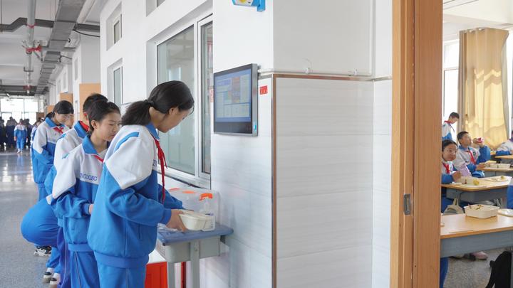 当天上午11时半,走进宁东学校配餐中心,只见工人们对配好的餐盒进行微波加热,然后装入餐车,立即由两辆配送餐车运送至宁东学校。而在配餐中心大厅,监控视频适时闪现着后厨十余处工作画面。而在食安系统的显示屏上,也显示着各个操作间的温度、动火离岗次数、供餐进程和违规操作警示等。“我们聘请专业公司运行配餐中心,供餐菜品每天不重样,荤素搭配合理,并由营养师审核菜谱。对饭菜采取自检、抽检和留样检测,并进行全程监控监督,确保学生用餐安全。”宁东学校党委委员雍安仁说。