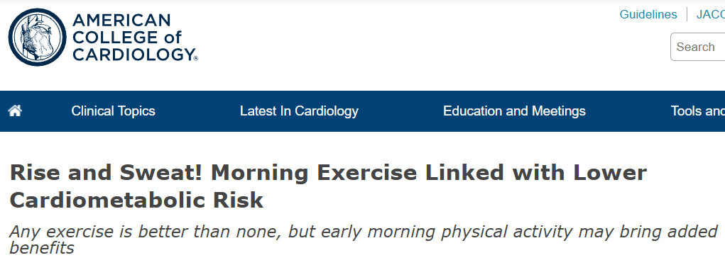 《美国心脏病学会杂志》发表的最新研究发现,与一天中较晚时间锻炼的人相比,习惯晨练的人患多种疾病的风险明显更低。