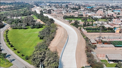 秘鲁灾后重建管理局后来改建为秘鲁国家基础设施管理局,瓦伊克罗洛河综合治理项目由该局负责。2022年5月,中交集团中国水利电力对外有限公司(以下简称“水电对外”)中标该项目并开工建设,2025年9月顺利完工。项目全长10.6公里,主要实施内容包括河岸防护、跨河渡槽、跨河贝雷桥、景观公园等工程建设。
