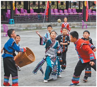 7年前,务川县以民族文化进校园的方式,将包括打篾鸡蛋在内的10余项仡佬族传统体育项目引入课堂,还联合多所学校共同编纂仡佬族传统体育教材。
