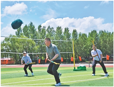 晨雾还未褪尽,在黑龙江省同江市八岔赫哲族乡中心校,校长毕洪兵扛着一捆竹竿快步走向操场,手中还有一个套着绿网的彩球,球上系着的红绸在微风中轻摆,“花花绿绿的,孩子们见了准喜欢”。作为赫哲族叉草球“老把式”,毕洪兵把这项传统活动带进了孩子们的体育课。