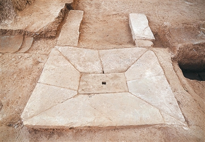 山顶建筑基址发现的石砌地漏。