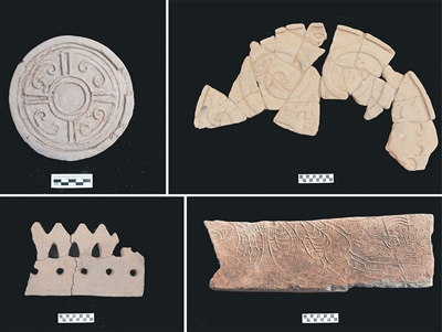 从出土遗物看,窑址出土大量建筑构件,包括板瓦、筒瓦、瓦当、砖及管道等,形制与山顶建筑第一期遗物一致,可确定这批陶窑是秦代砖瓦窑。所出夔纹大半圆瓦当当面图案与陕西秦始皇陵、栎阳城等遗址出土同类器一致,是秦代最高等级建筑的标准器,其中最大一件复原直径约80厘米。窑址区的发现不仅为遗址断代和分期提供了准确依据,还充分展现了中央集权下资源调配方式与标准化生产制度。