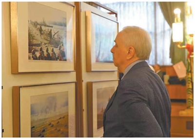 俄罗斯观众参观在俄罗斯首都莫斯科举行的“铭记历史 开创未来——纪念中国人民抗日战争暨世界反法西斯战争胜利80周年图片展”。 |