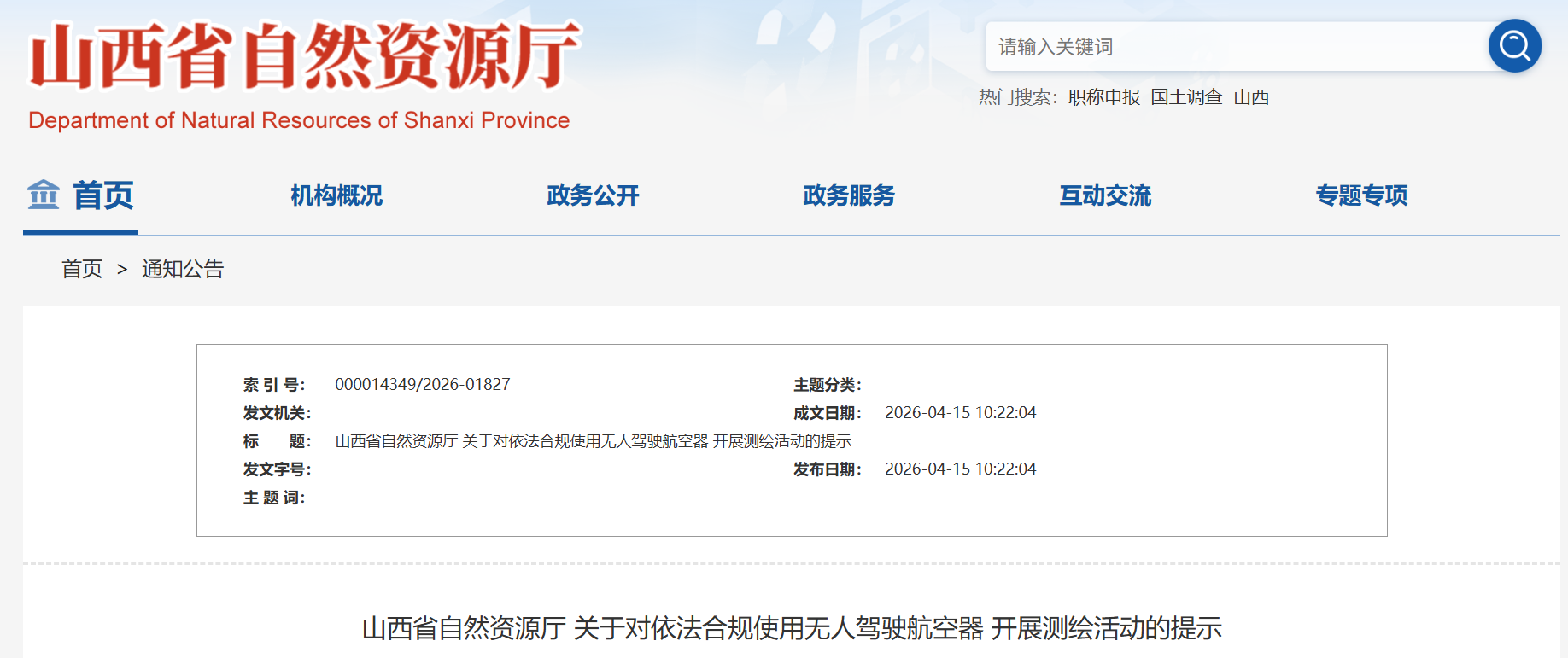 为防范无人驾驶航空器测绘活动中的违法违规风险,近日,山西省自然资源厅发布了《关于对依法合规使用无人驾驶航空器开展测绘活动的提示》(以下简称《提示》),要求各测绘资质单位增强法律意识,依法合规开展测绘飞行活动,共同维护国家安全、公共安全和低空安全秩序。