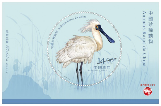 图为“中国珍稀动物”黑脸琵鹭小型张。(澳门特区政府邮电局供图)