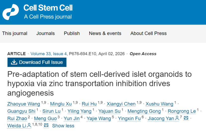 该研究成功破解了困扰领域多年的三大瓶颈——干细胞来源胰岛类器官功能成熟度不足、移植后低氧应激损伤以及血管化迟缓,标志着我国在该技术路径上实现了从“跟跑”到“领跑”的关键跨越。