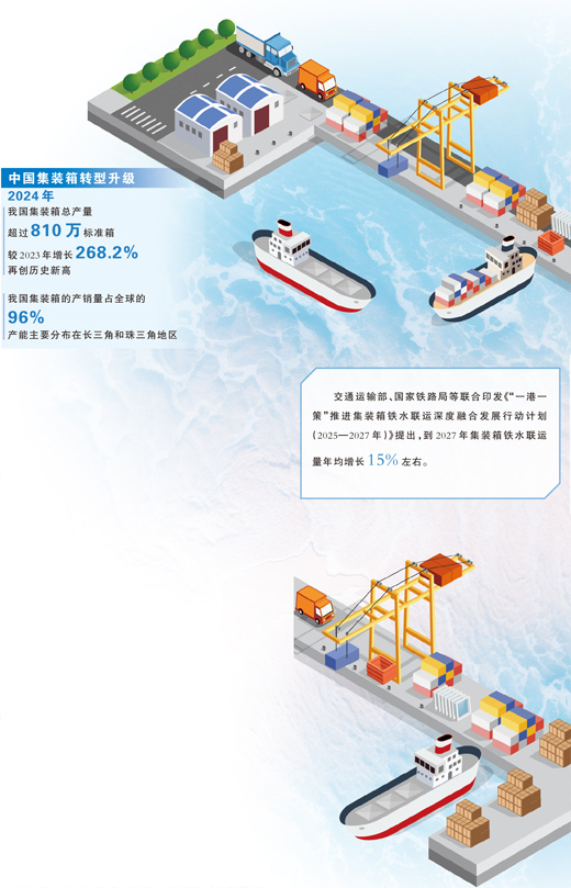 数据显示,2024年我国集装箱总产量超过810万标准箱,同比增长268.2%,再创历史新高,集装箱产销量占全球的96%,产能主要分布在长三角和珠三角地区。作为全球集装箱产业的核心力量,中国正以“小箱子”撬动大产业,书写实体经济转型升级的新篇章。