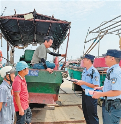 永兴岛海域,渔船往来如梭。在喧闹的码头,民警们仔细查验船舶证件,认真排查测试救生设备,一遍遍叮嘱渔民关注天气、规范作业。