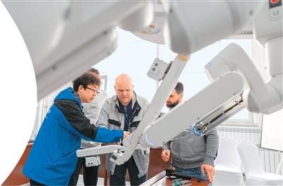 4月16日,在哈尔滨思哲睿智能医疗设备股份有限公司技术服务培训中心,技术人员对国外的临床支持工程师进行培训。新华社记者 张 涛摄