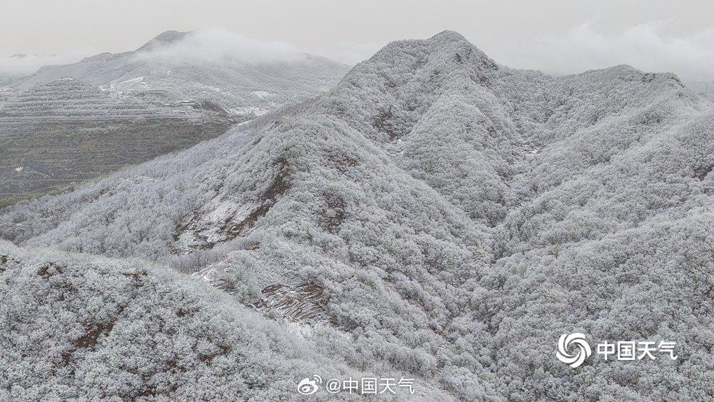 山顶覆白!辽宁本溪四月桃花雪冬春同框