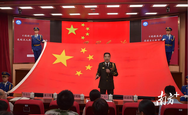 “同学们,你们知道五星红旗上的五颗星分别代表什么吗?”董立敢以一个问题开场,随后用珍贵史料以及亲身经历,系统讲述了国旗的诞生历程、设计理念与星徽象征。“这面旗,是无数先辈用热血染红的。守护它,就是守护我们的根和魂。”