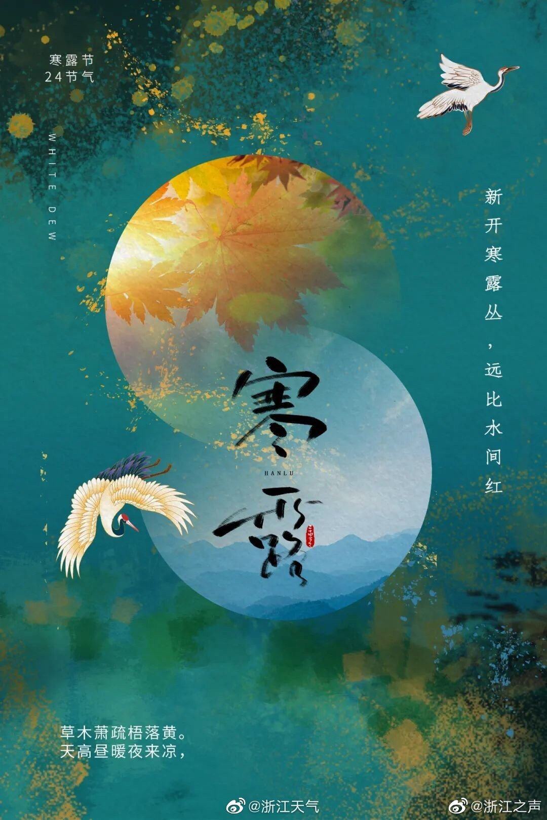 【今日, 寒露】今天3点55分,我们迎来了二十四节气中的寒露节气。寒露在二十四节气中最早出现“寒”字,是由凉变冷的表征。此时节秋意更浓,霜染红叶、蝉噤荷残,大雁南飞、菊花盛开。凉风乍起,应及时添衣,注重足部保暖。俗话说“白露身不露,寒露脚不露”,今日起可以告别“露脚踝”, 秋天的第一双长袜安排一下。 假期最后一天,杭州多云,最高气温24℃。假期尾声,返程高峰注意交通安全。 (浙江之声记者蔡吉康)