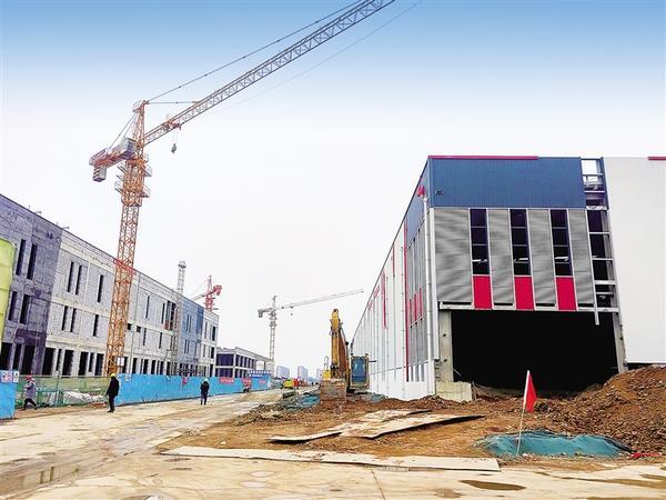 1月18日,记者在周口多式联运国际物流港工地看到,两排大型仓储主体已完成,正在进行墙体填充和配套设施安装。物流港一期项目总投资22 亿元,建设有展销中心、配送中心、流通加工车间、冷冻库等。项目全部建成后,可年运输货物200万吨,将对周口乃至河南省的经济发展起到带动作用。