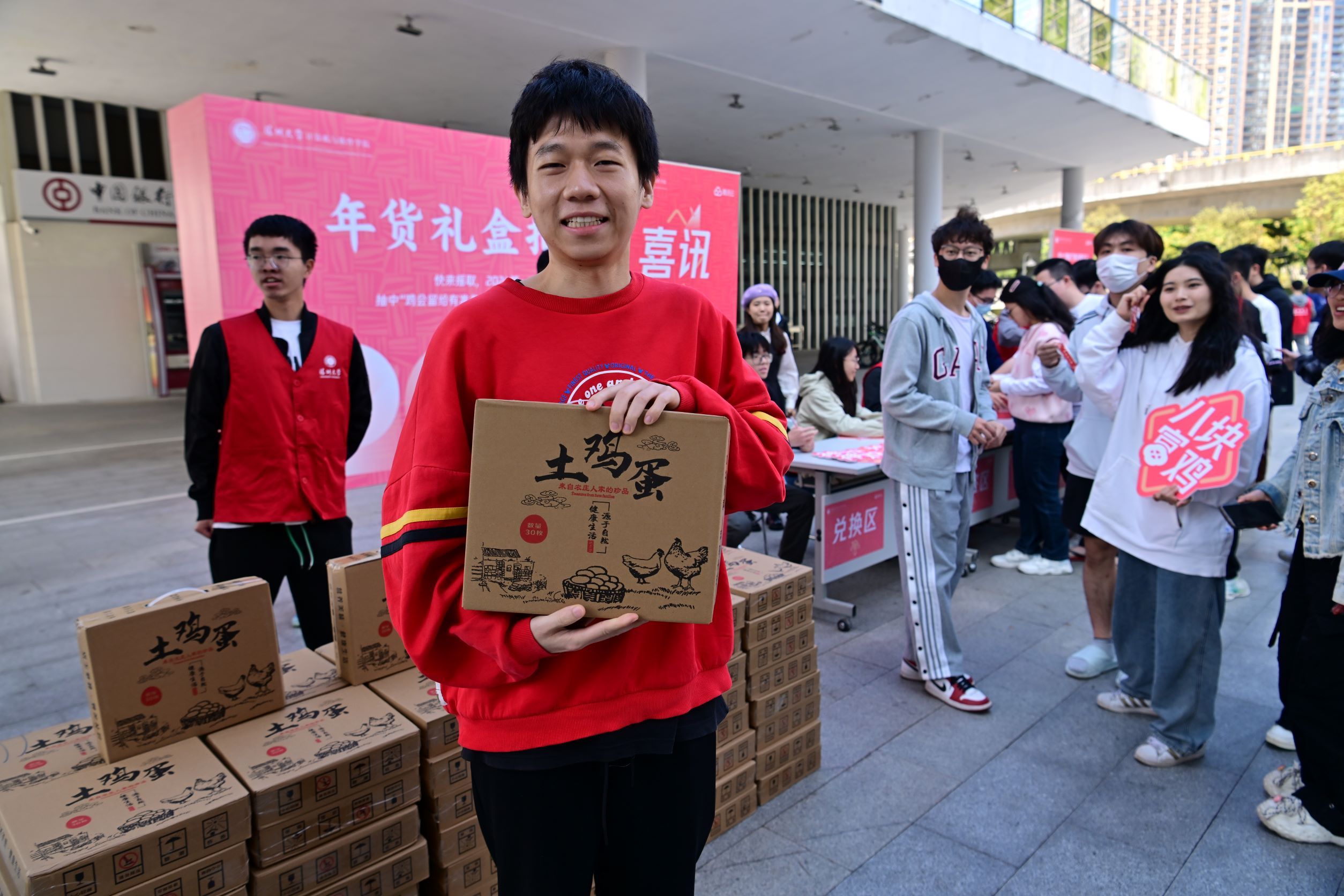 春节临近,养殖基地寄给深大腾班几百份乌骨鸡和上百份乌骨鸡蛋,同师生分享丰收的喜悦。参与该项目的腾班学生们决定,请食堂在放假前将乌骨鸡熬制成“AI鸡汤”,送给还在校的一万多名师生免费品尝,也尝尝“科技的味道”。
