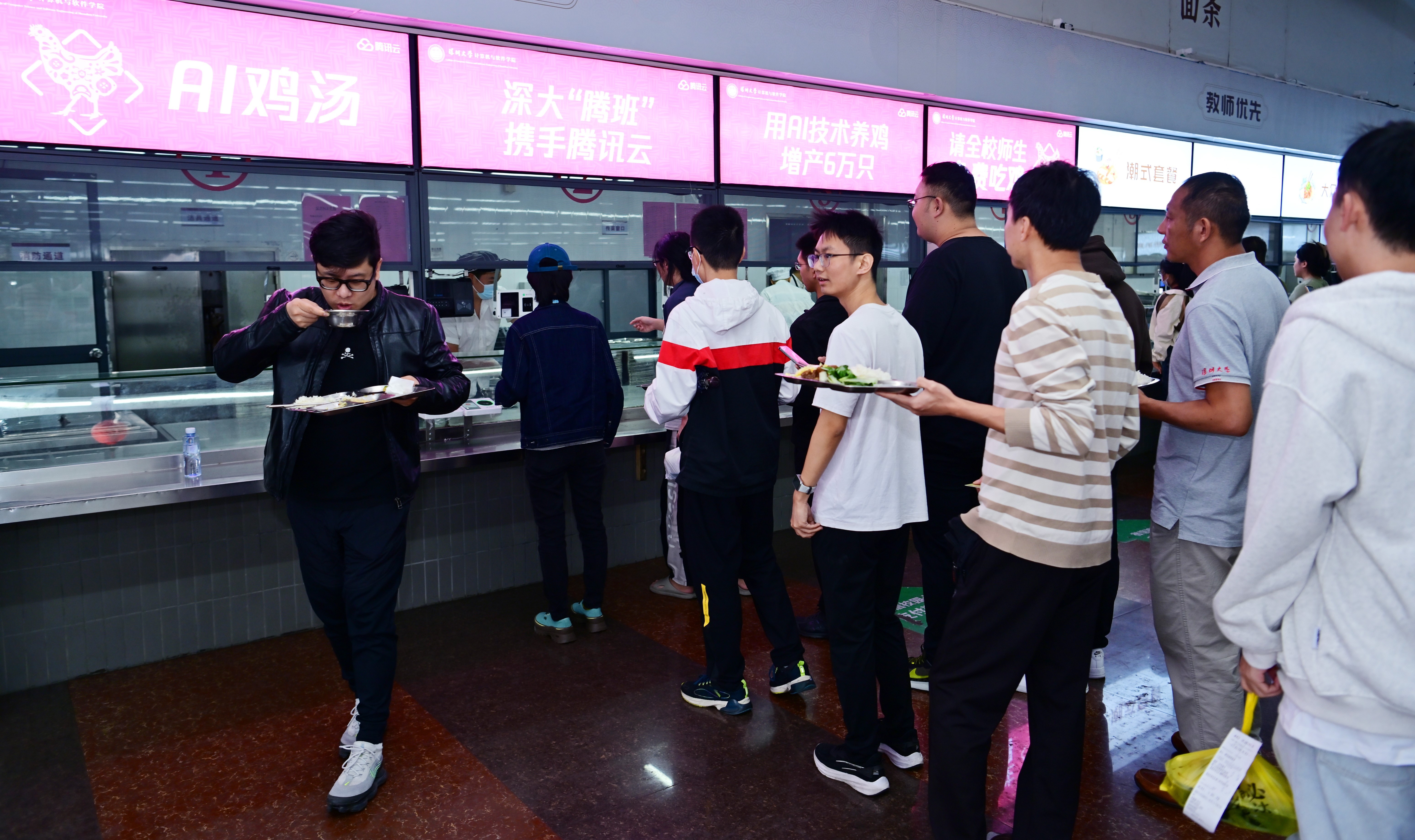 1月16日,深圳大学的食堂里多了几个“AI鸡汤”的档口。火红色的“免费吃鸡”招牌下,排队的师生甚至站到了食堂门外。这些档口后厨的每一只鸡,都是深圳大学腾讯云人工智能特色班(简称“腾班”)的00后大学生们自己用AI“养”的。