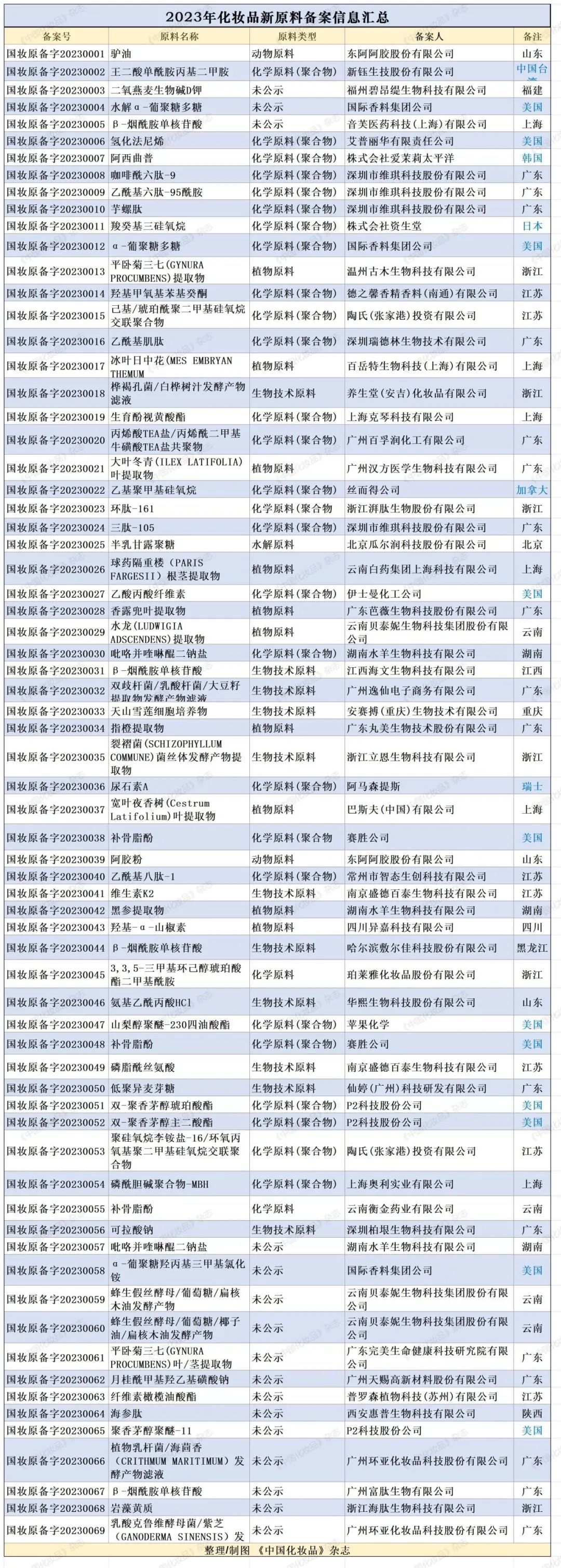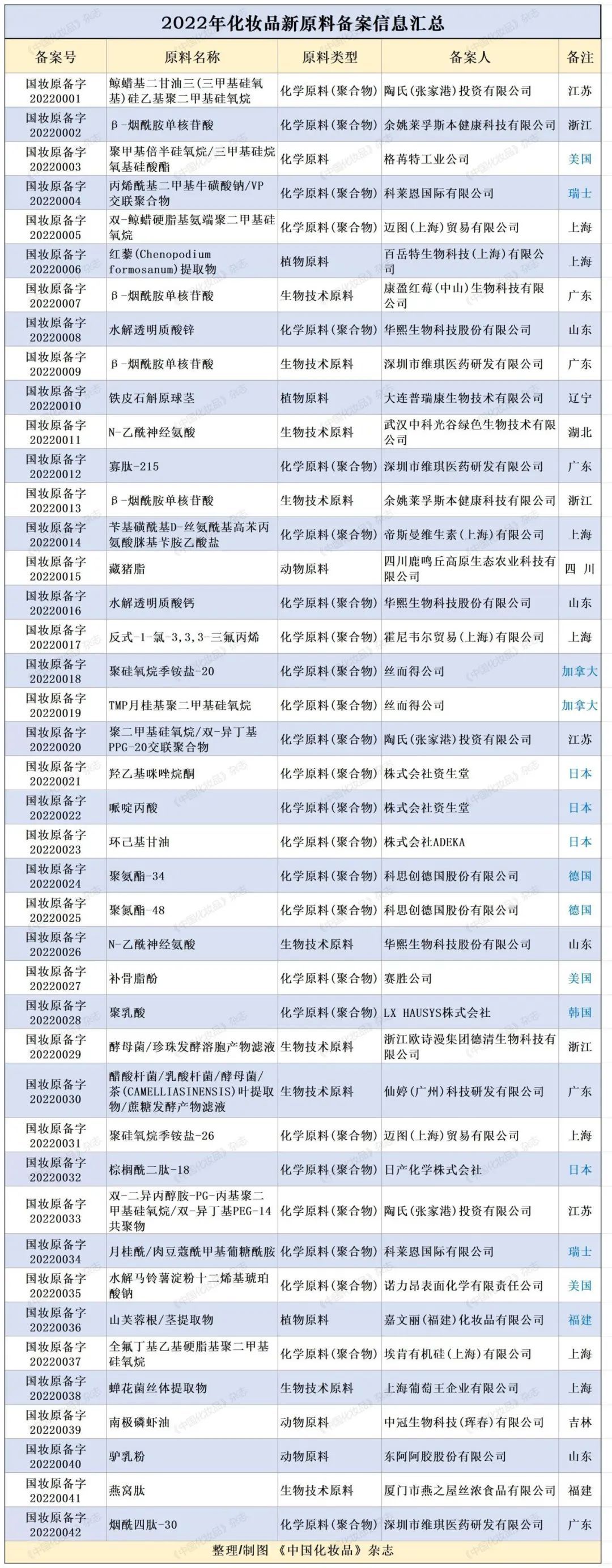 《中国化妆品》杂志注意到,在积极参与新原料备案的企业中,既有国际企业,也有本土企业,既有原料商,也有品牌商。
