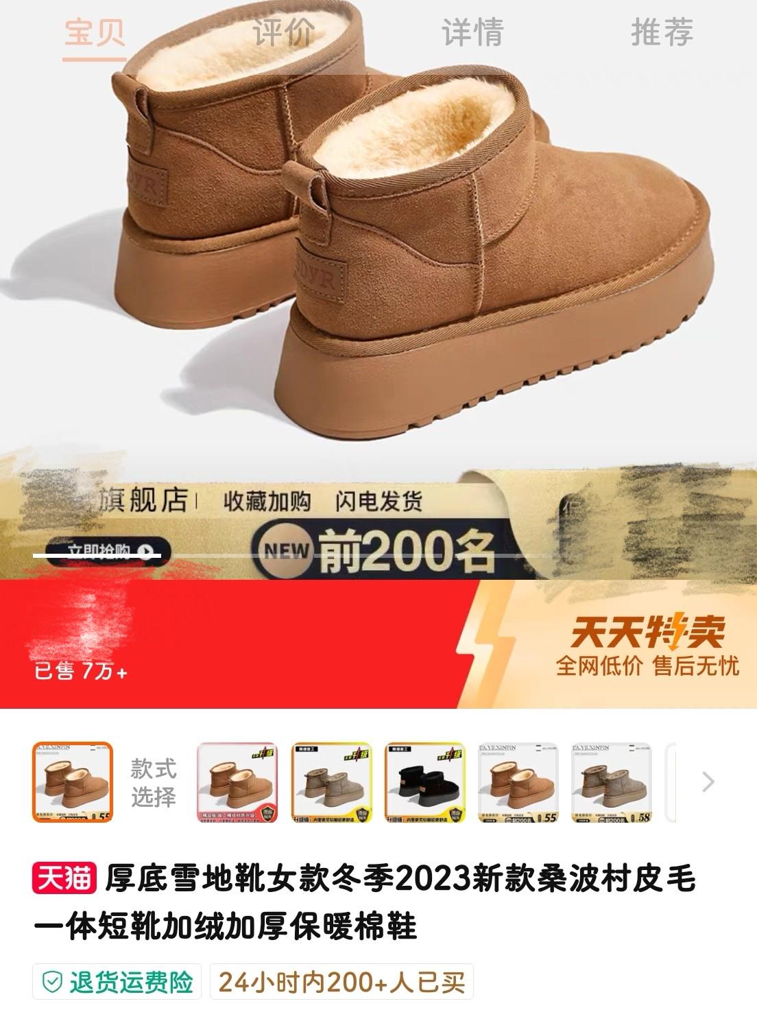 热销雪地靴(天猫店铺截图)