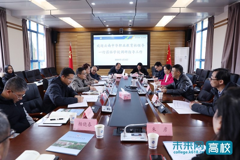 1月3日上午,云南中华职业教育社专职副主任马俊一行到云南机电职业技术学院开展“云南省职业院校发展情况”专题调研,云南机电职业技术学院党委书记赵伟,党委副书记、工会主席朱丽辉及相关部门负责人参加调研。
