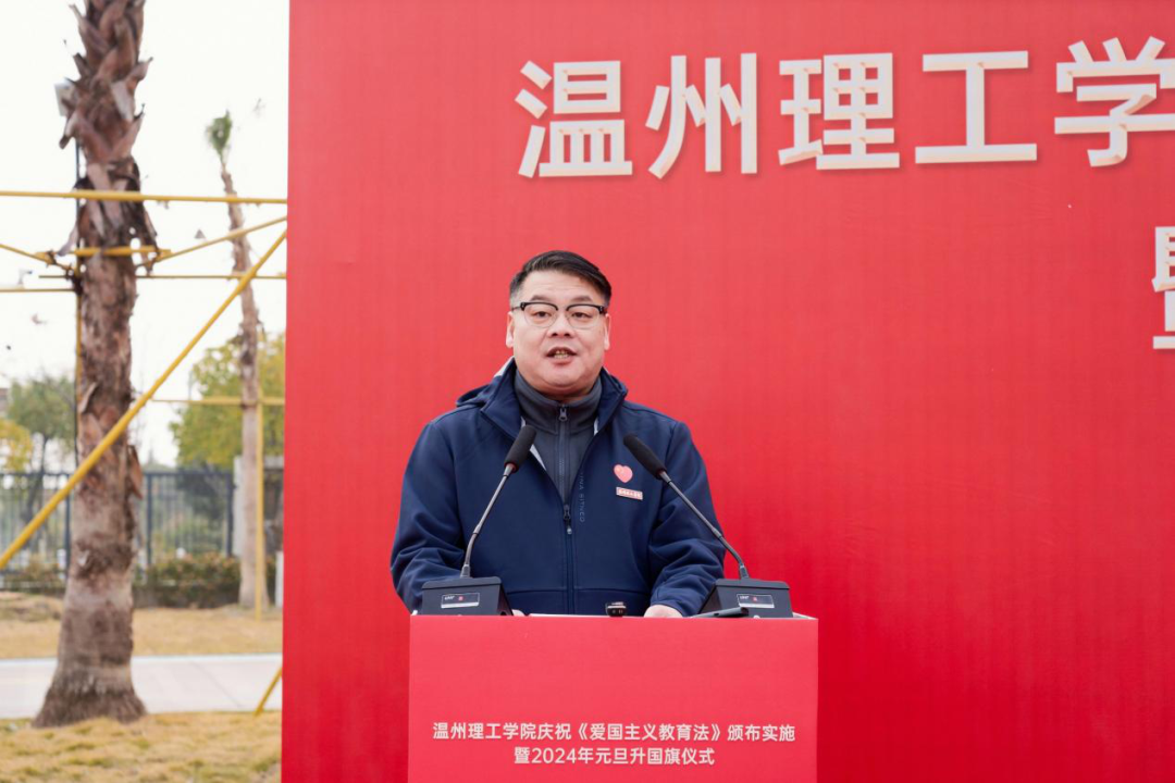 1月1日上午,迎着2024年第一缕曙光,温州理工学院举行了纪念《中华人民共和国爱国主义教育法》颁布实施暨元旦升国旗仪式。现场400余名师生深刻接受了爱国主义教育的浸润。