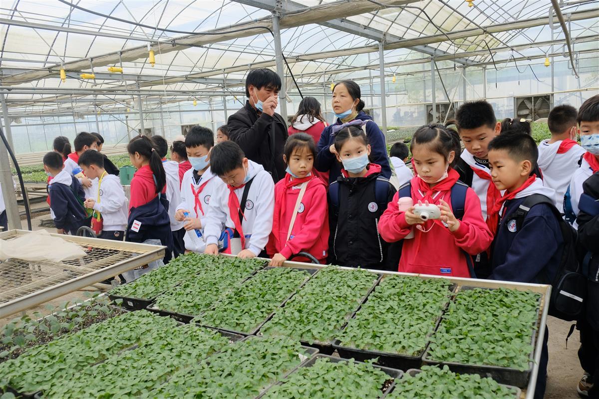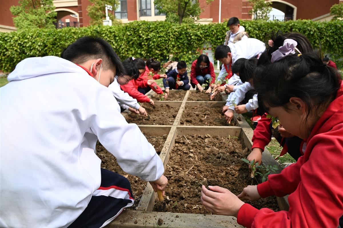 在观察和讨论的过程中,孩子们认识了多样的植物品种,认真记录所见所思。“我们要珍惜粮食!” 603班的学生彭恩奇激动地说。通过现代化的农业技术展示,孩子们深切地感受到科技和劳动相碰撞所产生的奇妙火花,并参与劳动中。在种植基地里,孩子们开展了“种植蔬菜”的拓展活动。他们用自己的小手一点一点将嫩苗插进土里,切实感受植物的一生。