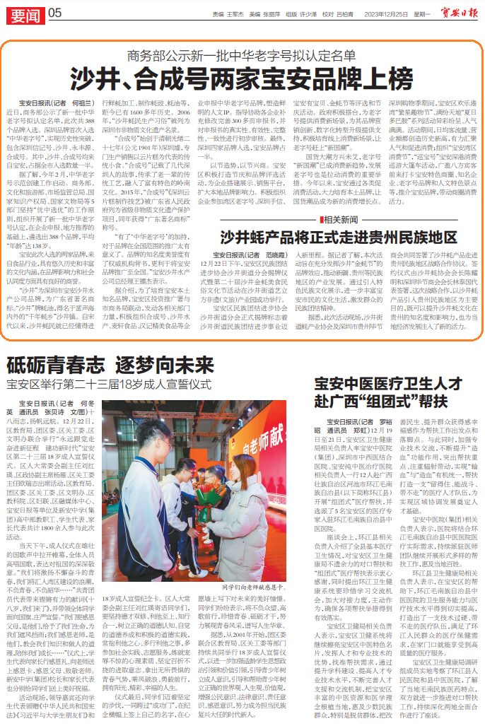 近日,商务部公示了新一批中华老字号拟认定名单,此次共388个品牌入选。深圳品牌首次入选“中华老字号”,实现历史性突破,包含深圳信记号、沙井、永丰源、合成号。其中,沙井、合成号均来自宝安,占据全市入选数量一半。