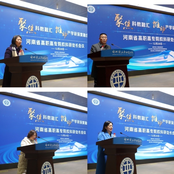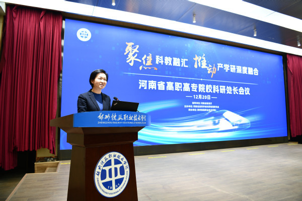 马玉霞代表郑州铁路职业技术学院对参会领导的到来表示欢迎,并从强化制度保障、搭建产学研创平台、打造技术服务高地三个方面介绍了学校在产学研合作、提高科研质量和水平方面的实践经验。她希望全省高职院校能够以此次会议为契机,加强产教融合、科教融汇,构建“产学研用”一体化创新生态链,提升科技创新与服务水平,为河南“创新驱动、科教兴省、人才强省”战略作出更大贡献。