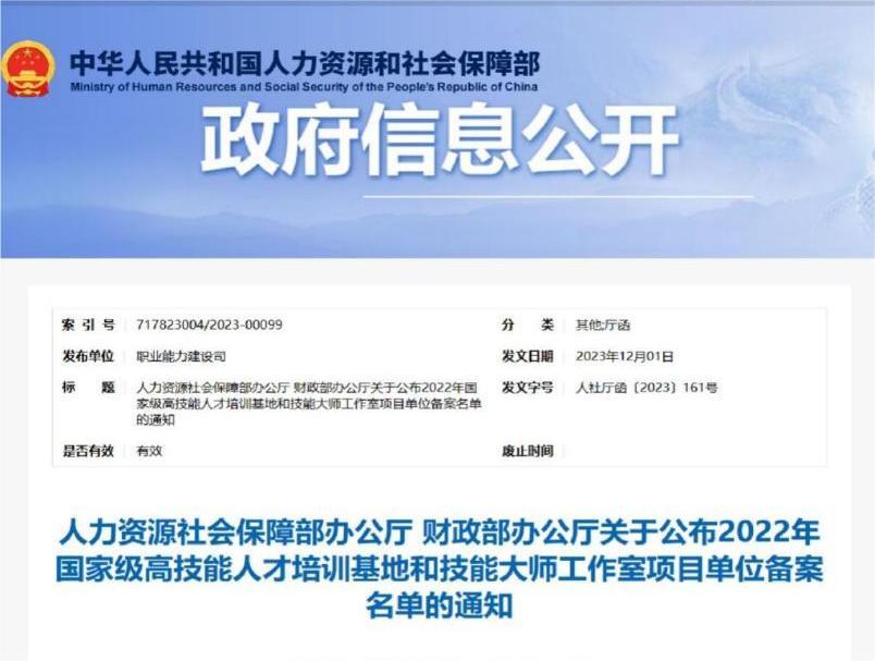 近日,人力资源社会保障部办公厅、财政部办公厅发布了《关于公布2022年国家级高技能人才培训基地和技能大师工作室项目单位备案名单的通知》,河南牧业经济学院“董晓峰技能大师工作室”成功获评国家级技能大师工作室。