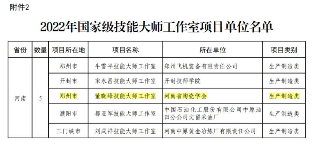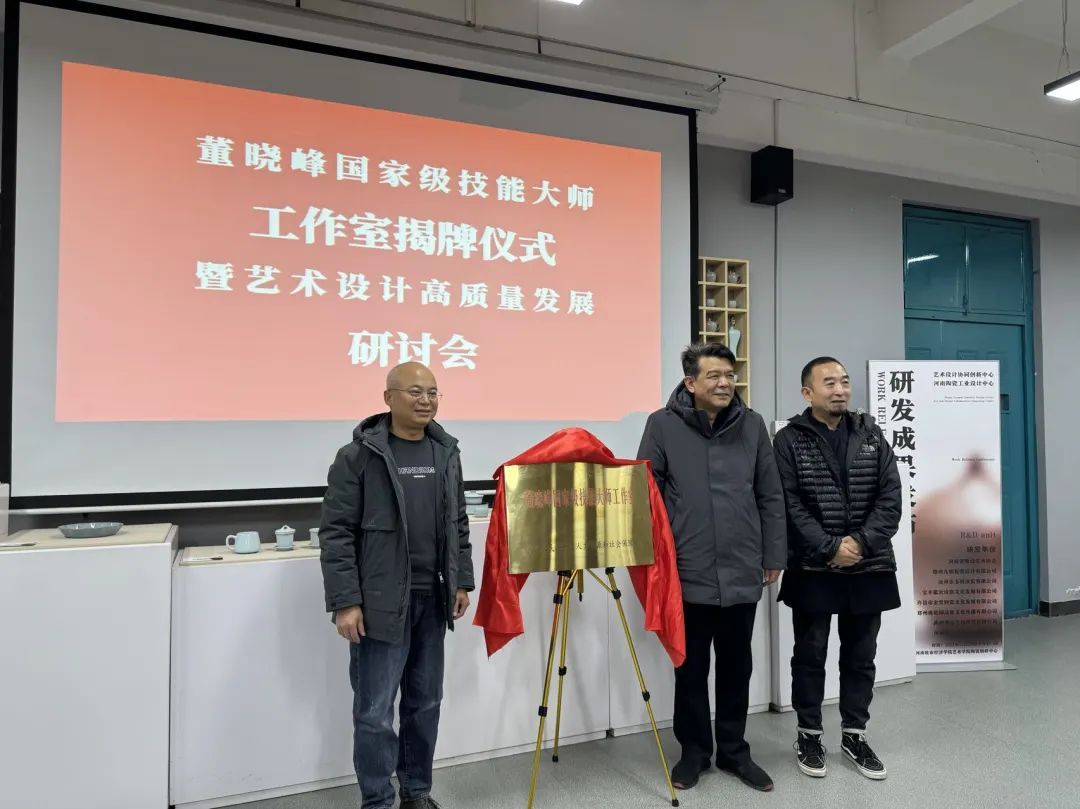自2018年末河南牧业经济学院引进高技能人才董晓峰以来,该校艺术学院在陶瓷创研中心的基础上,以及学校各方支持,尤其是在其本人的不懈努力和孜孜以求下,“董晓峰技能大师工作室”从市级技能大师工作室到省级技能大师工作室,现在又成功评选为国家级技能大师工作室。该工作室同时是“河南省劳模和工匠人才创新工作室”和“河南省示范性劳模和工匠人才创新工作室”,并在2023年成功获批河南省工业和信息化厅“河南省陶瓷工业设计中心”。