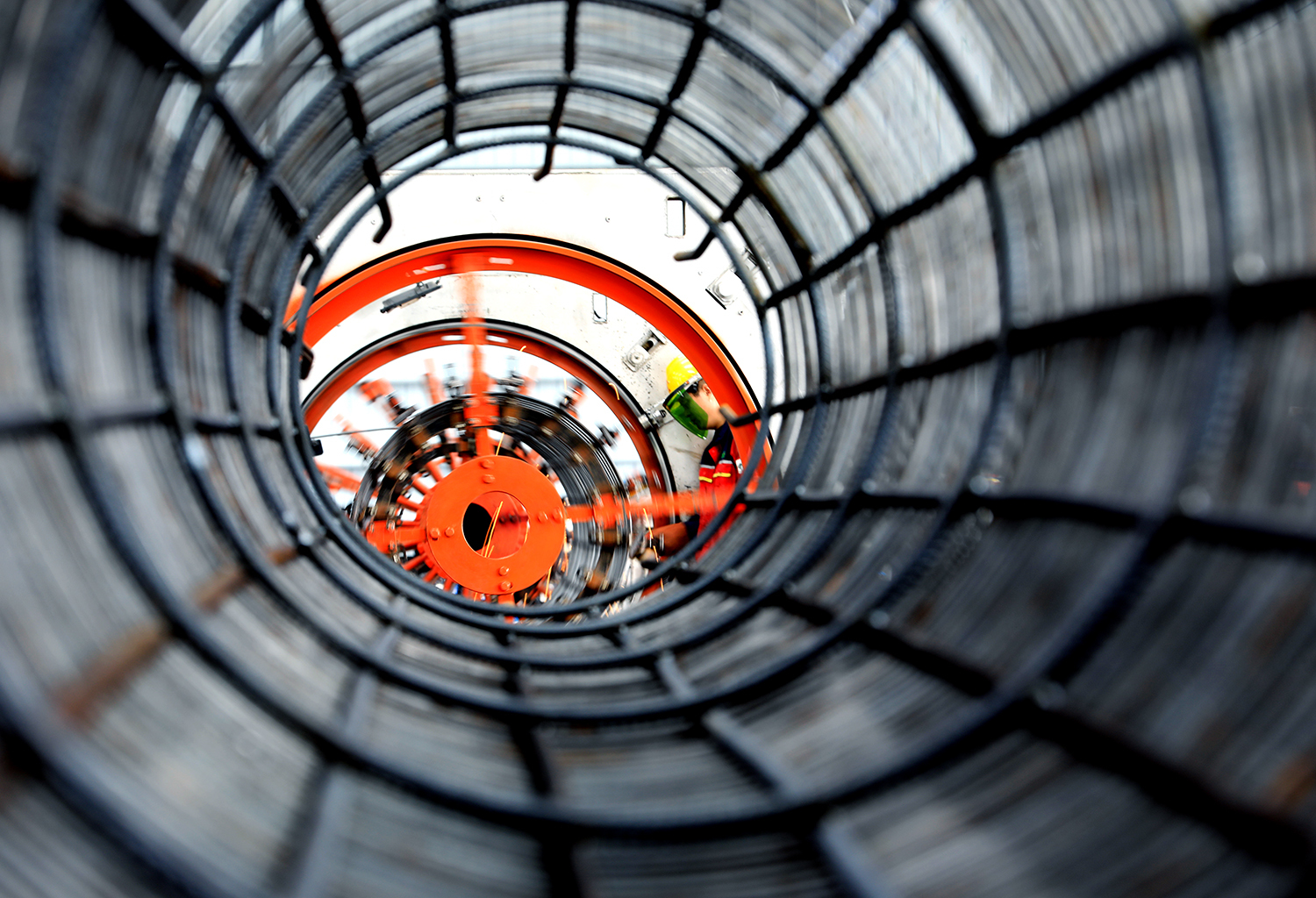 钢筋加工场进行钢筋笼焊接——王利 摄