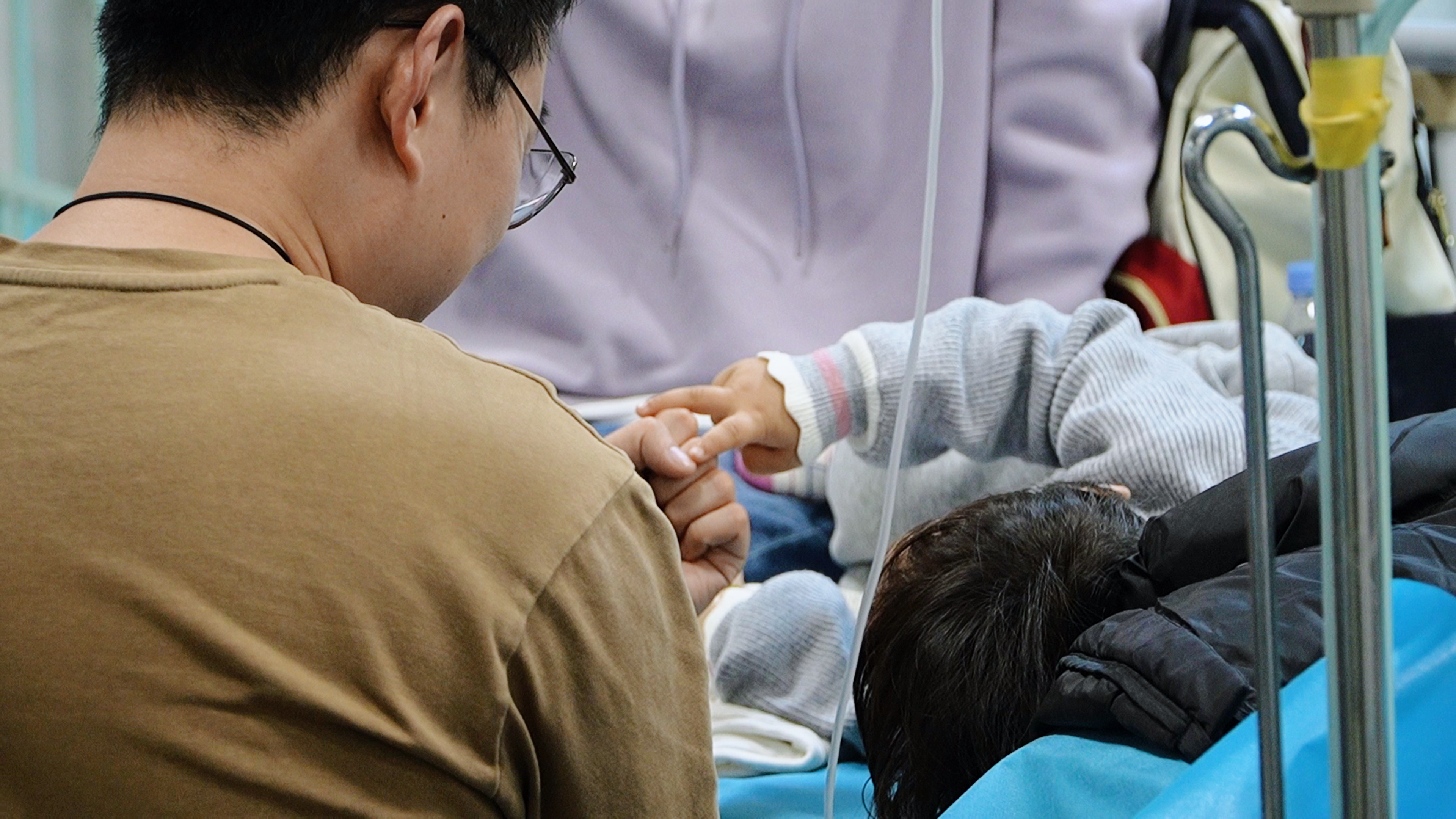 最近一段时间,支原体肺炎、流感等呼吸道疾病高发,抵抗力弱的儿童成了重点“袭扰”对象,不少孩子都“中招”了,紧急到医院寻求治疗。裹着厚厚衣服脚步匆匆背着孩子看病的家长、用尽心思陪打点滴的孩子做游戏安抚情绪的父亲、深夜坚守的医护……近日,晨报记者深夜蹲守南京市儿童医院急诊,通过镜头和文字,去捕捉深夜里这个地方的温暖瞬间。
