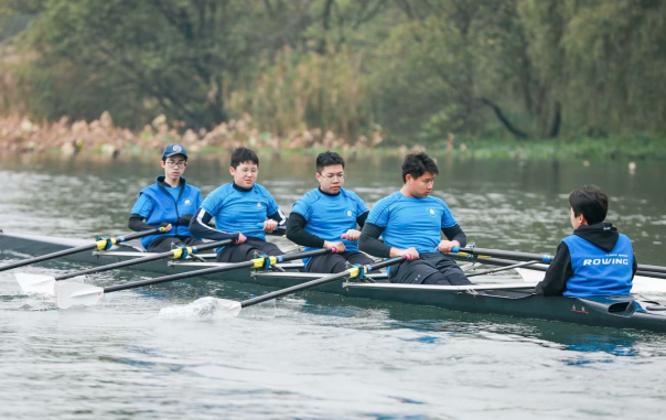 令记者印象颇深的,是该校LONG WAKE赛艇社的故事。提及赛艇这项运动,对青少年或许而言非常陌生。这样一项运动,如何在一所年轻的学校落地生根甚至脱颖而出?其实这件事的开头,发生在一位当时酷爱赛艇运动的初中生杨天栩身上。六年级的他刚开始接触赛艇,就爱上了赛艇。于是,他开始在同学间宣传赛艇,并邀请同学到俱乐部试课,但是之后都没有进展——要组建一支队伍,太难了!为了改进宣传,杨天栩通过PBL(项目式学习)课题,完成了一份《中国青少年赛艇发展情况分析报告》。最后英语演讲的机会也被他利用了起来,他和同学分享了自己与赛艇的故事,让同学们真切感受到了这项运动的魅力。最终,11名同学加入社团。在此背后,杨天栩直言:“要感谢大家对我的信任以及老师们对我的帮助,在云谷我能获得极大支持与资源,给了我更大的动力。”云谷赛艇队于2019年8月14正式成立,如今传承3届,已经蓬勃发展为队员稳定的一支队伍,每年吸引众多同学参与,获奖成绩优异。杨天栩也凭借优异表现,如今在UWC常熟世界联合学院就读。