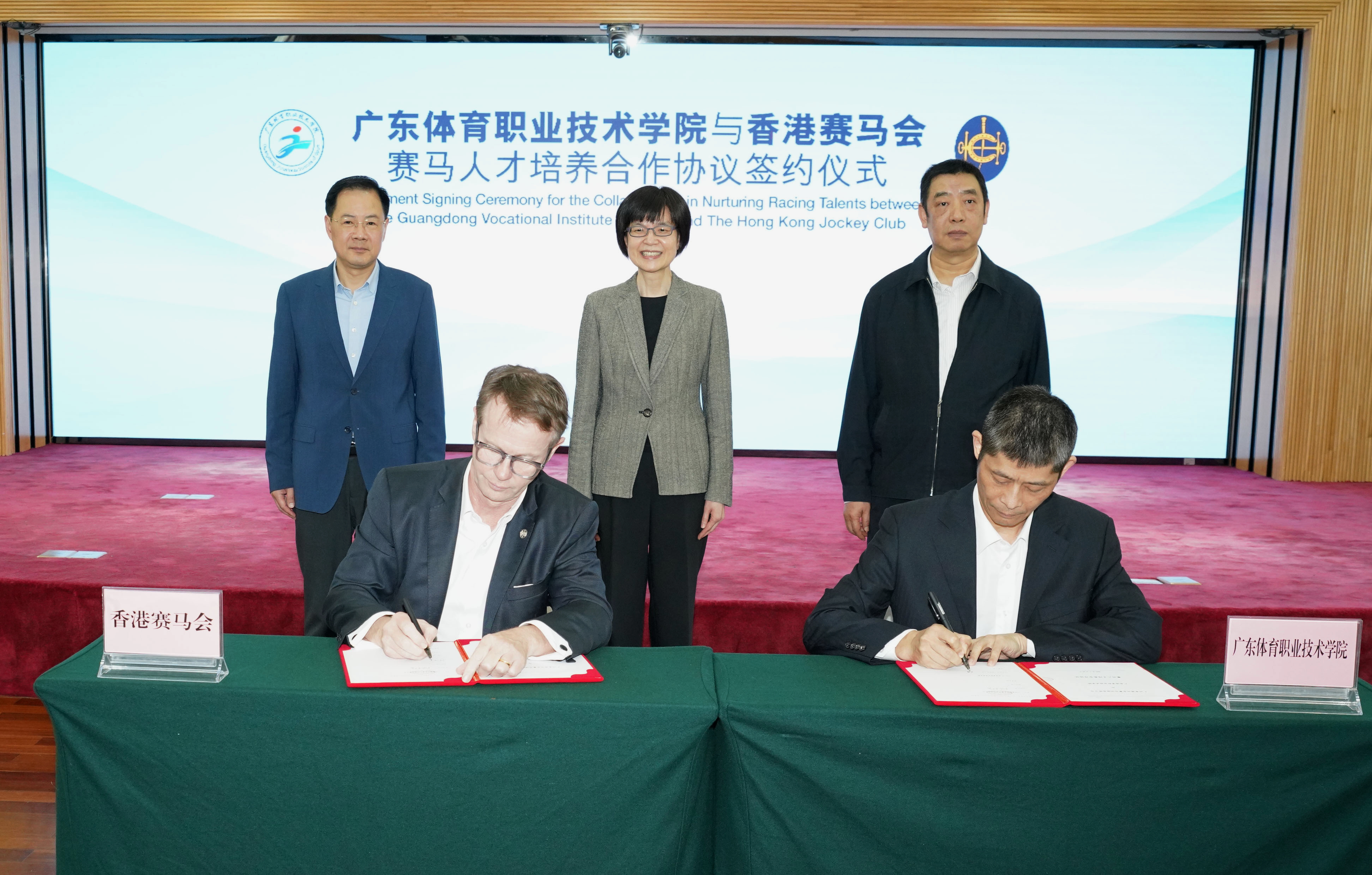 本平台讯 香港特区政府环境及生态局和广东省农业农村厅日前在广州召开粤港马产业合作专责小组的首次会议。会上,广东体育职业技术学院与香港赛马会签署了赛马人才培养合作协议培养马产业人才,助力大湾区打造世界级马匹运动及产业中心。