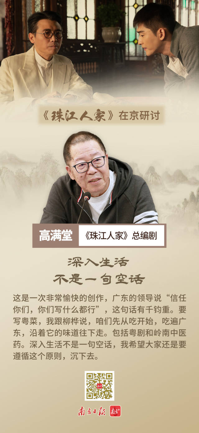 好的编剧,要深入生活、扎根人民。在进入正式创作之前,高满堂搜集了100多本关于粤菜、粤剧、粤中医药行业的书籍,在资料上仔细批注,为柳桦指点故事创作的重点关注方向。研读资料后,高满堂带着柳桦到广东各地深入采风,了解三大行业的发展与传承,“尝尝岭南的味道”。