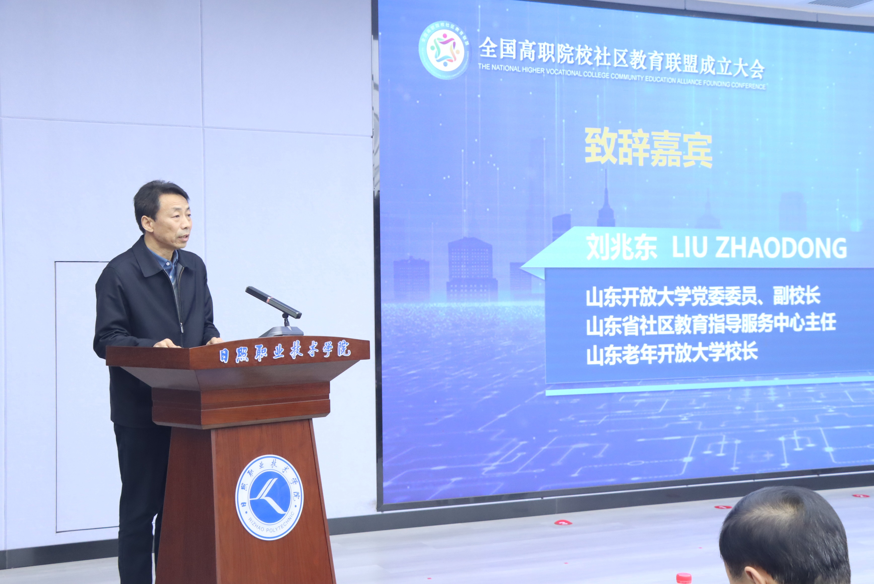 刘兆东在讲话中强调,社区教育是整个社会大教育的终端,是教育抵达社会组织细胞的终点,对于提升公民素质,增强社区治理能力,维护社会和谐稳定,起着至关重要的作用。日照职业技术学院是我省较早开展社区教育、老年教育的高职院校,也是开展社区教育、老年教育卓有成效的高职院校之一。希望全国高职院校社区教育联盟成立后,一方面在联盟内部成员之间建立紧密融洽的联系、合作机制,另外一方面加强和山东省社区教育联盟、山东省老年教育资源共建共享联盟的合作交流。充分发挥各自特色和优势,互学互助,共建共享,建设更多实需优质教育资源并辐射、推广到基层社区和农村,共同化解社区教育、老年教育领域存在的供需矛盾、城乡发展不平衡等难点、堵点问题,推动社区教育、老年教育高质量发展。