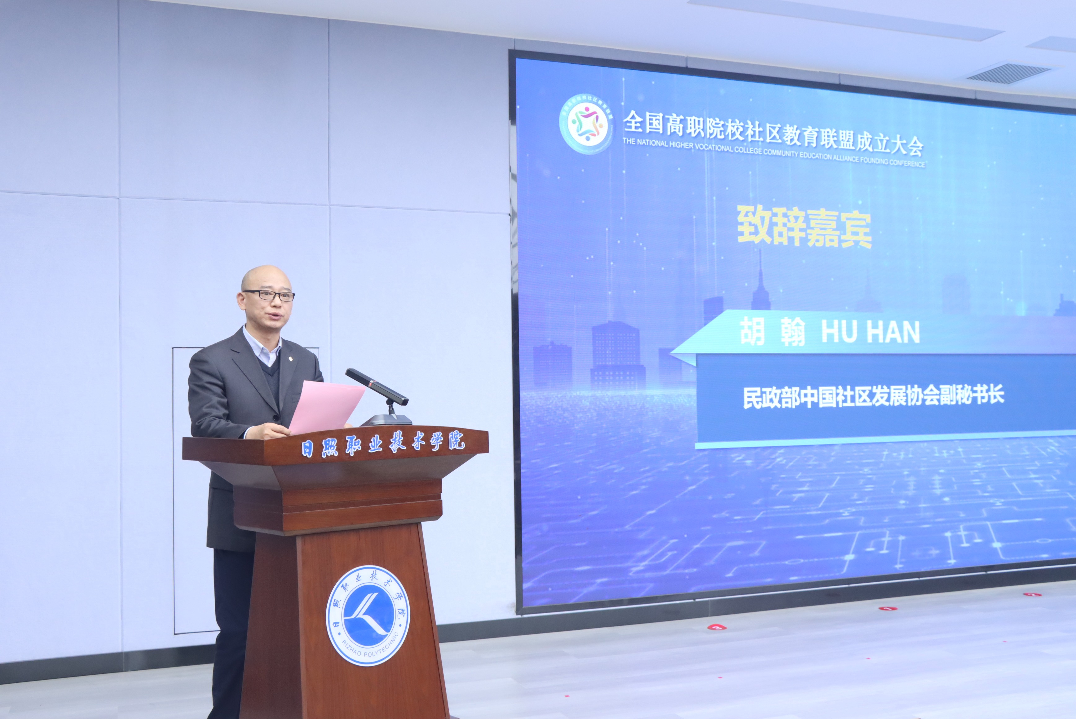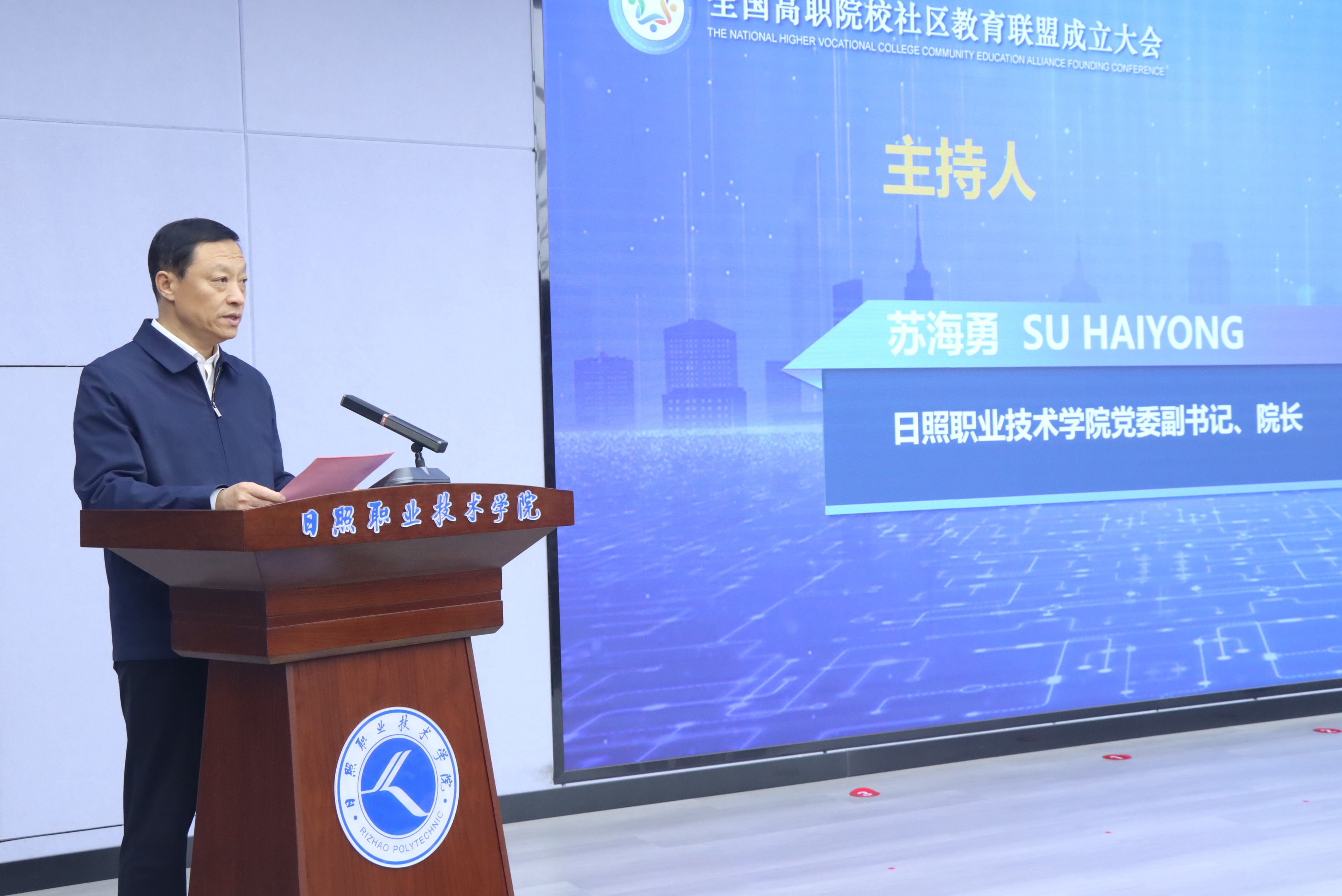 为整合集聚全国高等职业院校社区教育优质资源,推动社区教育工作高质量发展,日照职业技术学院牵头发起成立全国高职院校社区教育联盟,12月6日,联盟成立大会在日照职业技术学院召开。民政部中国社区发展协会副秘书长胡翰,山东开放大学党委委员、副校长、山东省社区教育指导服务中心主任、山东老年开放大学校长刘兆东,日照职业技术学院党委书记肖梅,山东省社区教育指导服务中心常务副主任、山东老年开放大学副校长、山东开放大学社区教育服务中心主任刘彦文,日照市委教育工委委员、市教育局党组成员、副局长王海峰及来自全国68所高职院校的100余名领导出席成立大会。大会由日照职业技术学院党委副书记、院长苏海勇主持。