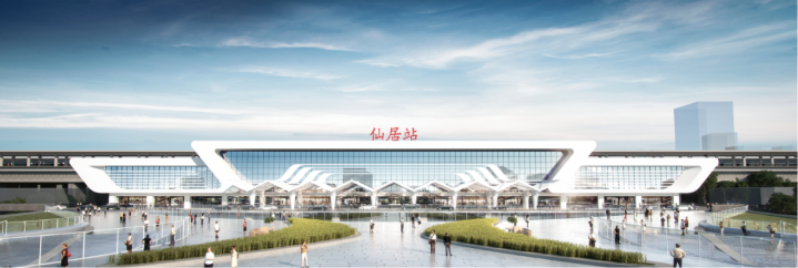 仙居站站房的设计理念为“高山流水、烟涛微茫”,建筑以“云纹”勾勒轮廓,并采用穿梭、叠落的手法,形成立面元素,展示出建筑缥缈轻盈之态。