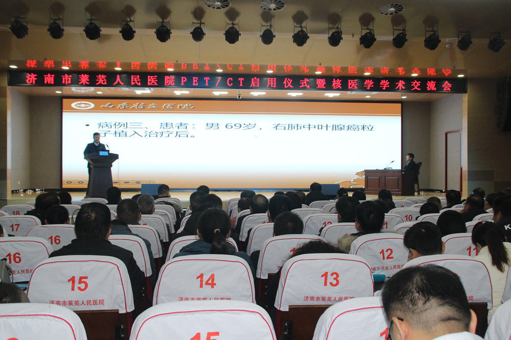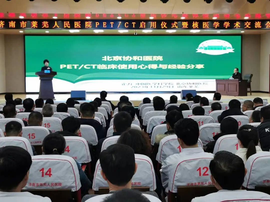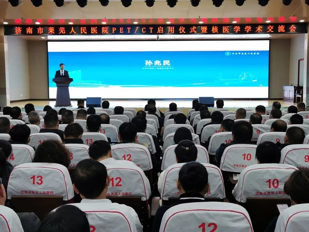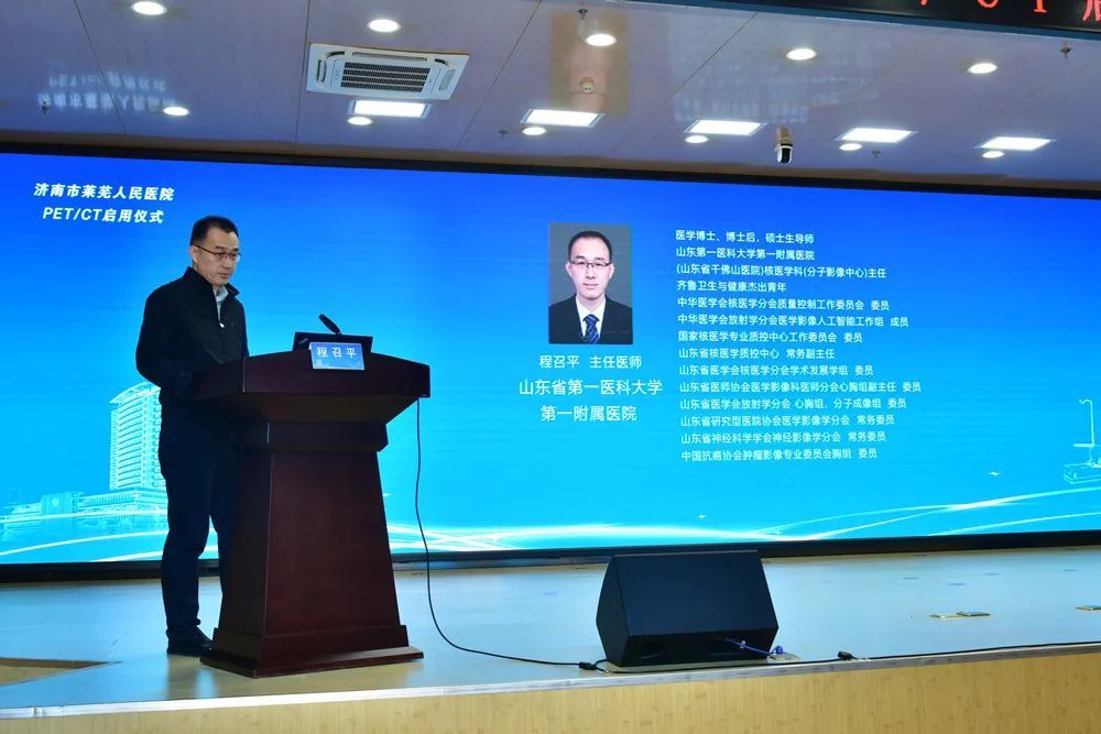 莱芜区卫生健康局党组成员、正处级领导干部杜鹏程,国家核医学医疗质量控制中心专家委员会主任委员、北京协和医院核医学科主任霍力教授先后致辞,对医院PET/CT的正式启用表示热烈祝贺,对该设备投用后医院的诊断治疗技术迈上新台阶予以高度期盼。
