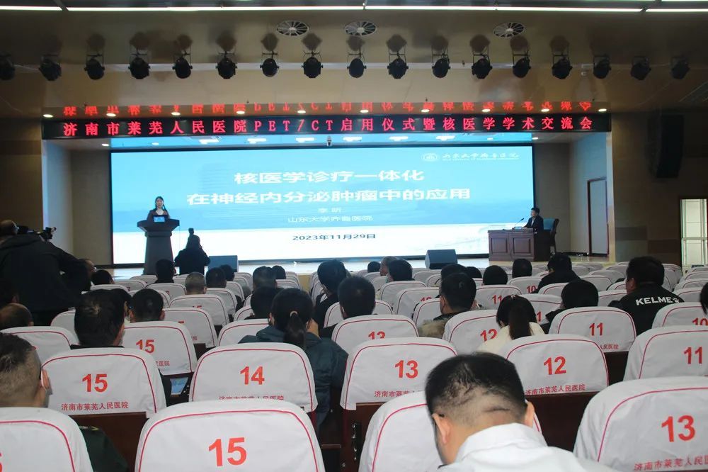 11月29日上午,济南市莱芜人民医院PET/CT启用仪式暨核医学学术交流会在行政楼三楼多功能厅举行。国家核医学医疗质量控制中心专家委员会主任委员、北京协和医院核医学科主任霍力教授,山东省立医院核医学科主任、山东省医学会核医学分会主任委员姚树展教授,山东大学齐鲁医院核医学科主任、山东省医学会核医学分会候任主任委员李昕教授,山东省第一医科大学第一附属医院核医学科(分子影像中心)主任程召平教授应邀出席启用仪式。