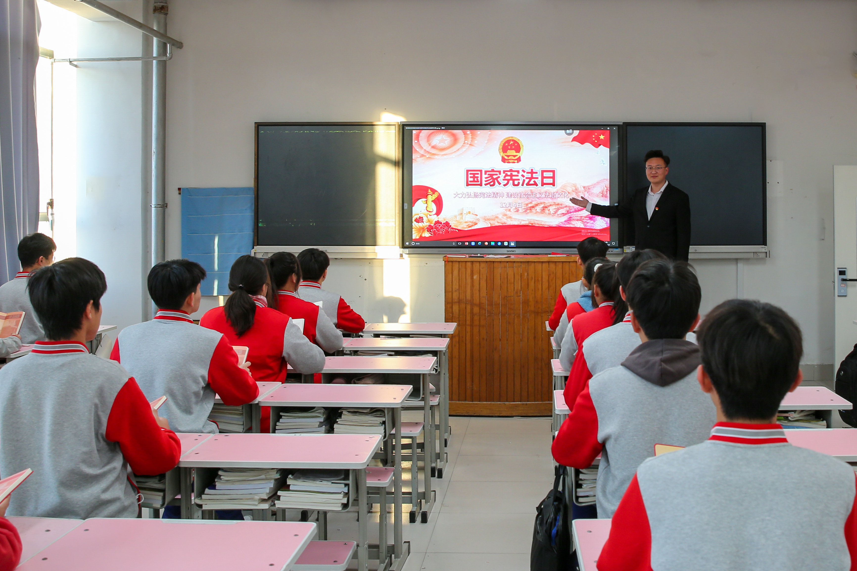 当日,山东水利技师学院组织开展“宪法知识进校园”主题教育活动。通过晨读宪法、宪法知识小课堂、宪法知识竞赛等形式,对学生进行宪法教育。让学生们学习宪法知识,弘扬宪法精神,增强学法、知法、守法意识,在学院营造人人崇尚法律、遵守法律、维护法律的浓厚法治氛围,迎接“国家宪法日”的到来。(翟慎安)