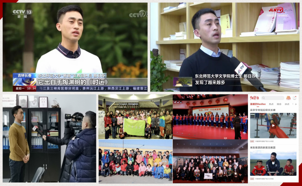 饮水思源,反哺家乡。那日苏曾说:“扶贫先扶智,当一个孩子决定奔跑,谁也阻挡不了他前进的脚步,这是教育的力量,也是教育扶贫的意义。”为了让更多牧区的孩子们能够像自己一样走出草原,2017年4月,那日苏在贝尔苏木创建支教团,带领成员在不通水电的老校舍里搭建起临时支教学校,连续七年利用暑假为留守儿童义务辅导,并开设了爱国主义教育课、朗诵课、体育课等,充分激发了孩子们对未知世界的渴望,在他们的心中埋下了爱祖国、爱家乡的种子。他的故事被拍摄成大学生公益支教纪录片,扶贫助学事迹被中央电视台、中央人民广播电台、吉林广播电视台、中国青年报、腾讯视频等多家媒体宣传报道,吸引了更多爱心人士的加入,共同助力贫困家庭孩子圆梦。
