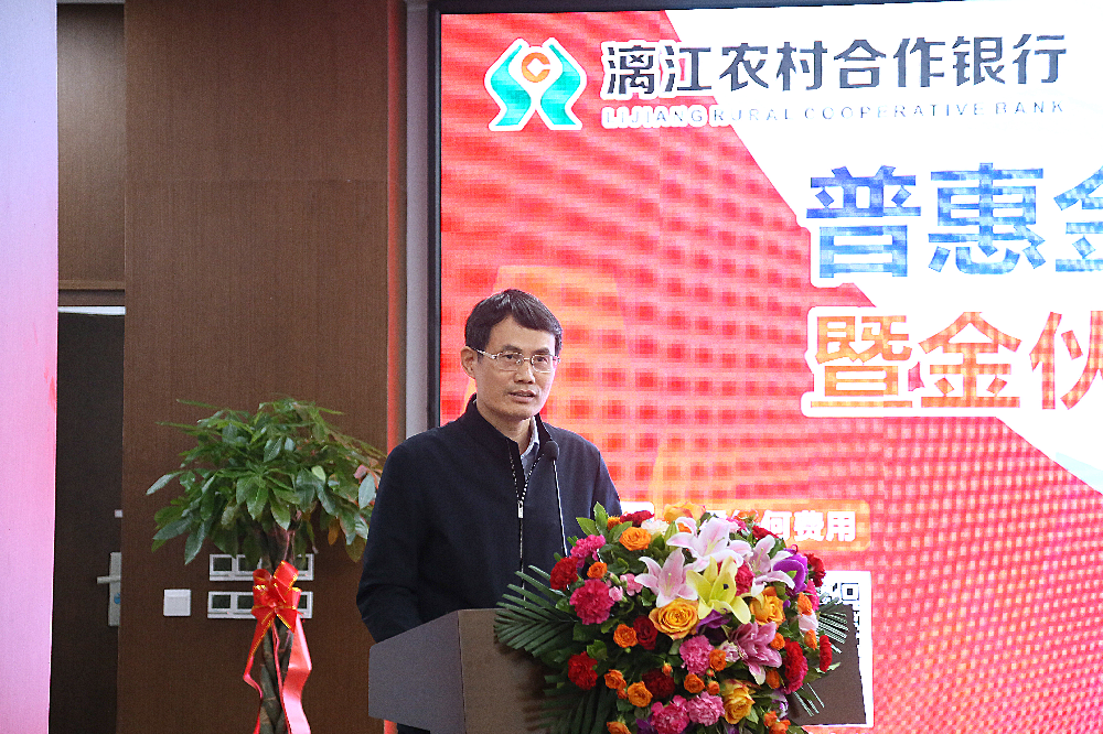 发布会上,漓江农合行党委书记、董事长汤耀新向在场人员介绍了该行推出的“金伙伴·新易贷”和“金伙伴·桂林米粉贷”两个贷款新产品。
