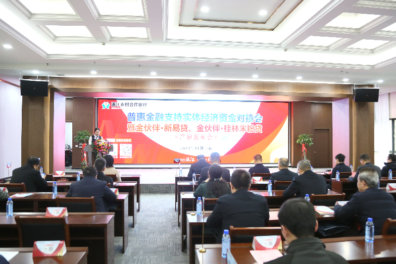 为全面支持地方经济高质量发展,隆重推出“金伙伴”系列新产品,近日,广西漓江农合行普惠金融支持实体经济资金对接会暨“金伙伴·新易贷、金伙伴·桂林米粉贷”产品发布会在桂林市翠竹路77号漓江农合行业务综合楼召开。桂林市人民政府副市长王昕,自治区农村信用联社市场总监杨俊宇出席会议并致辞。桂林市政协副主席汤桂荔,市政府和城区部委办局与监管部门相关领导及各商会、村委和企业代表,漓江农合行领导班子、董监事成员和各部室、各支行负责人约280余人参加会议。