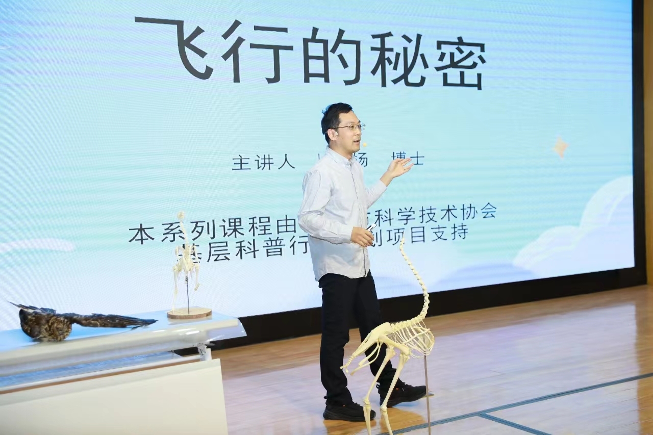 “亿万年前,一种带羽毛的恐龙脱离同类,飞向蓝天,演化出今天的鸟类大家族……”这句话你熟悉吗?没错!正是出自四年级语文课文——《飞向蓝天的恐龙》。陕西自然博物馆李扬博士以小学语文课本为切入点,为大家带来了一场跨越亿年的课程。李博士借助动物标本的展示与对比,向同学们剖析了飞行动物的分类及特征。课堂上,同学们回答问题的兴趣高涨,在一次次的思维启发和碰撞中,飞行动物的奥秘逐渐揭开了神秘面纱。