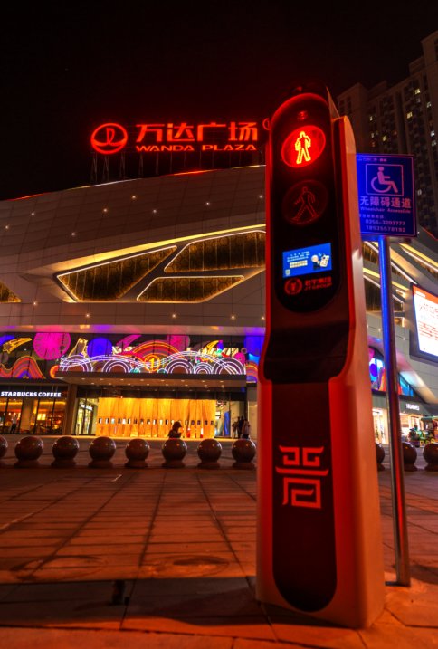 该智能斑马线机器人位于中铁十一局承建的晋城市文博路-文峰路连通道路工程白水街与文峰路交叉口路段,通过将智能机器人与智慧发光砖进行有效结合,在实现交通安全保障的同时,让这座古老的城市新增几分时尚元素。